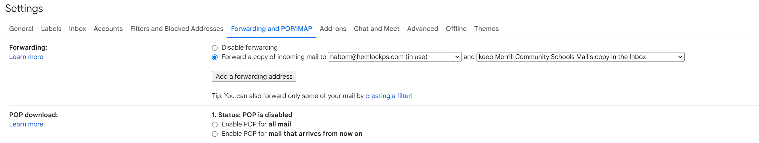 7. Once the confirmation is complete, select Forward a copy of incoming mail to <email address> and Keep in mailbox